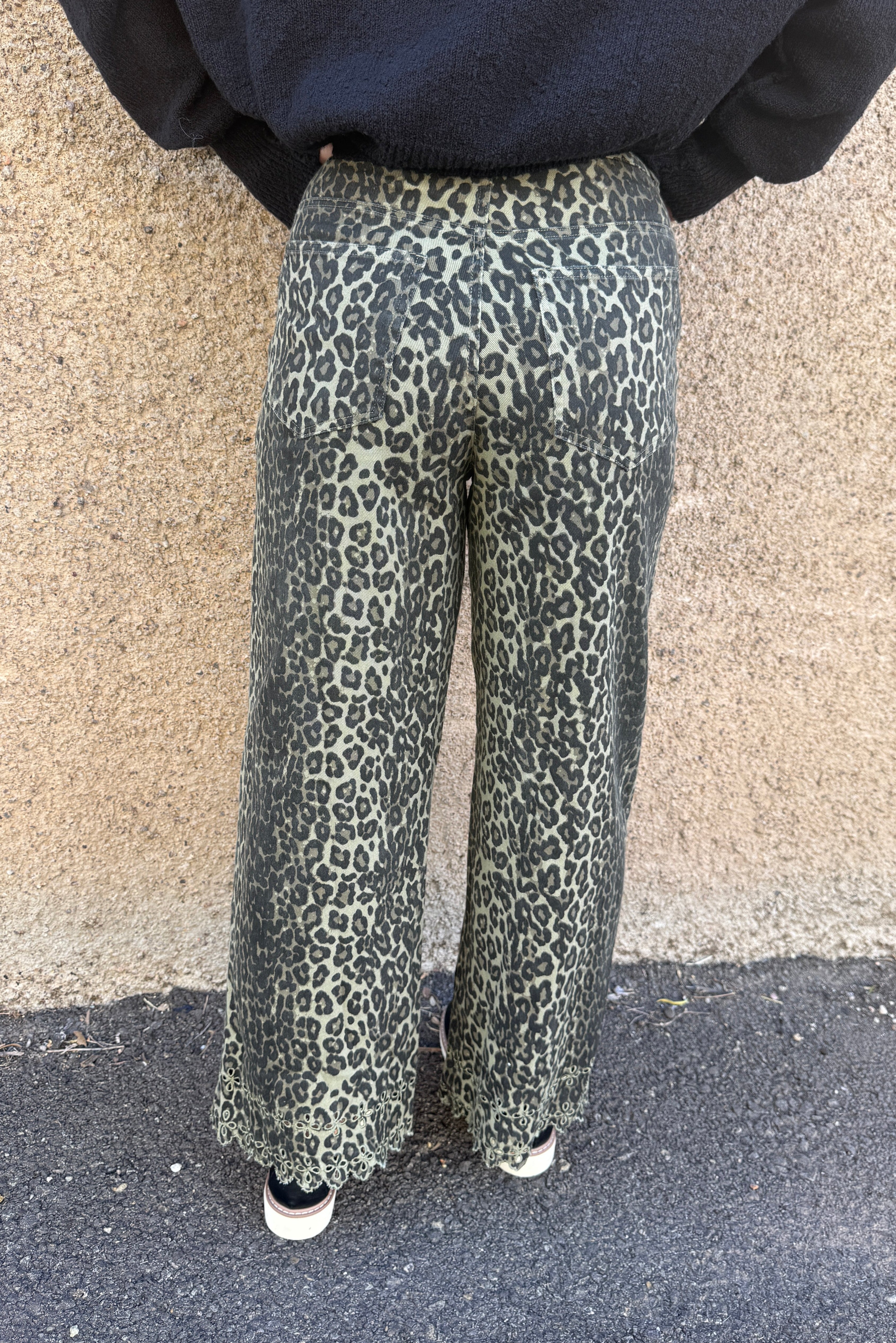 These pants are such a fun mix of bold and feminine. The leopard print gives them that little bit of edge, while the floral embroidery at the hem softens the look just enough — it’s such a pretty detail when you catch it up close. They’ve got a classic zip-and-button front with real pockets (because we all need those!), and the lightweight cotton fabric has a nice bit of stretch so they move comfortably with you.