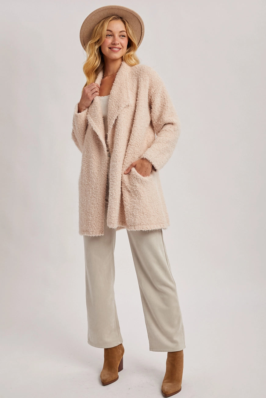 Cozy up in our Dreamy Fuzzy Drape Cardigan!