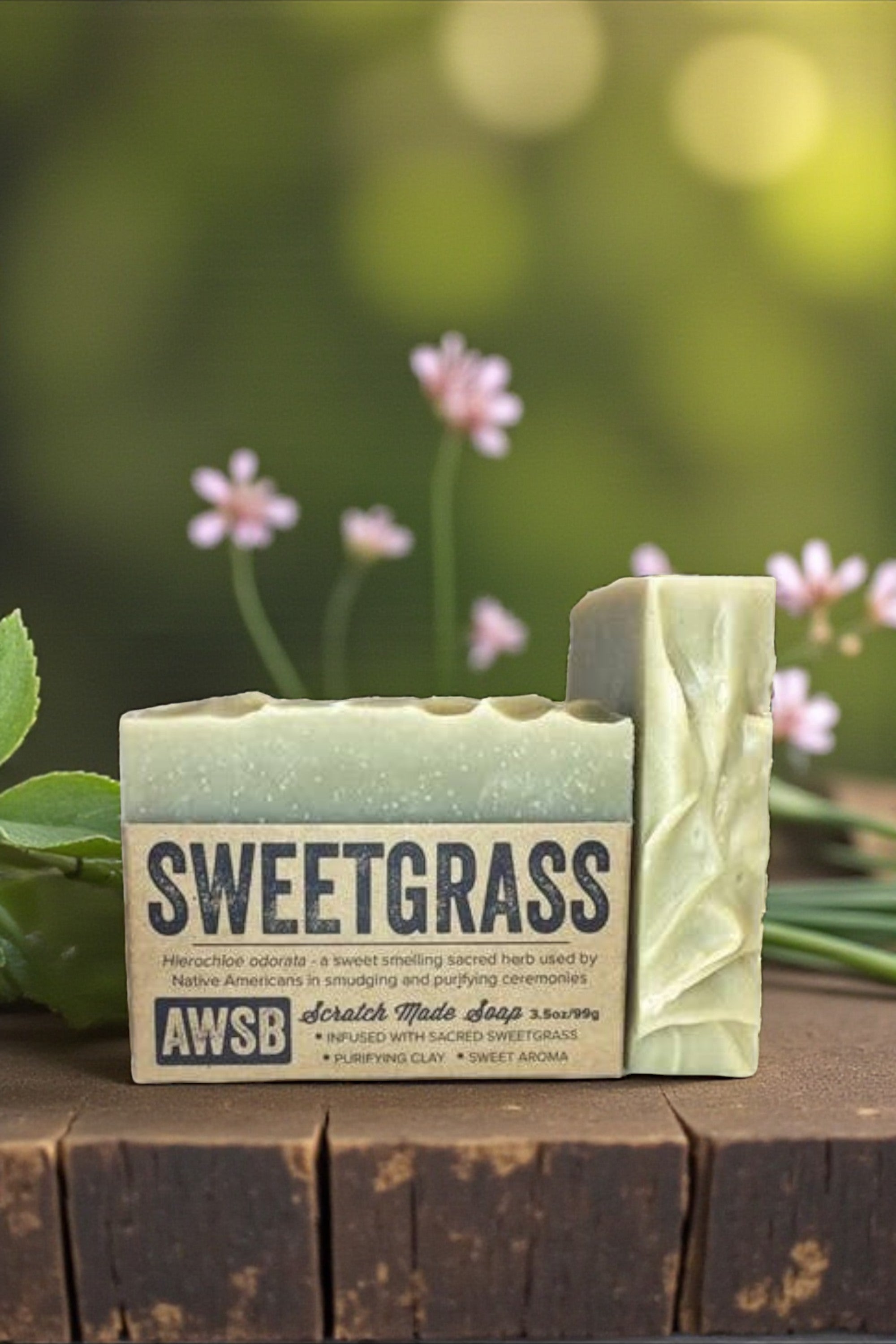 A sweet, slightly grassy, vanilla spice essential oil blend infused with sacred native sweetgrass braids and enriched with purifying green clay.