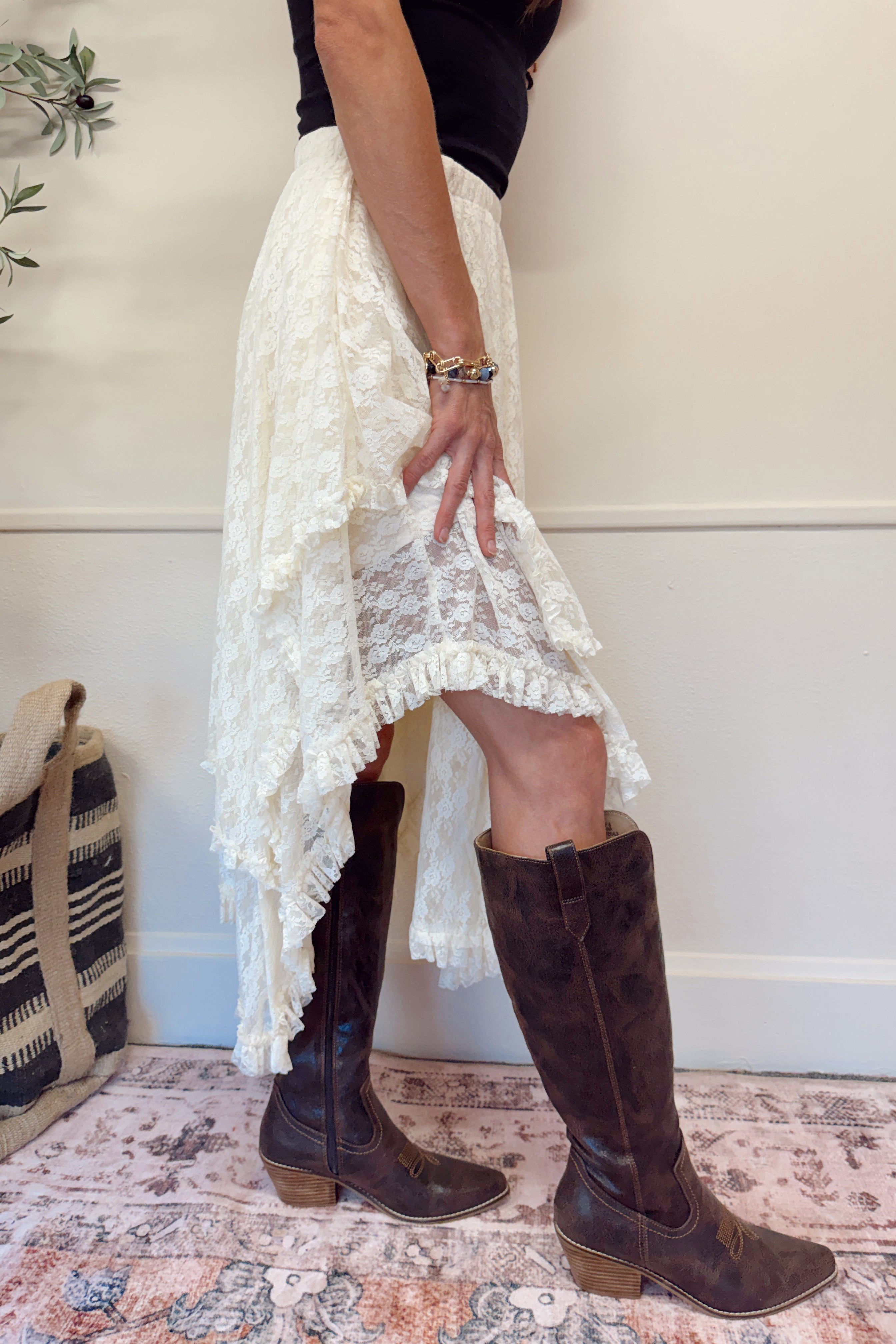 Lace Tier Midi Skirt - Ecru