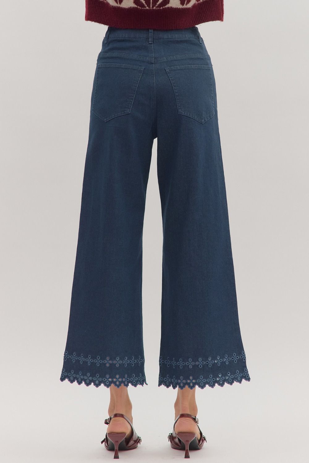 These pants are one of those finds that feel both familiar and totally unique. The high waist gives a great shape, and the ankle length works with just about any shoe. But it’s that scalloped, floral-embroidered hem that really sets them apart—sweet, unexpected, and so easy to style. They’ve got the classic jean pockets and button-fly closure, so they wear like your favorite denim, but with a little extra charm. The fabric’s lightweight with a touch of stretch (73% cotton, 25% polyester, 2% spandex). The classic dark denim wash gives them that timeless, goes-with-everything feel—easy to dress up or down, and always in style. Definitely one of those pieces you’ll be glad you grabbed when you did
