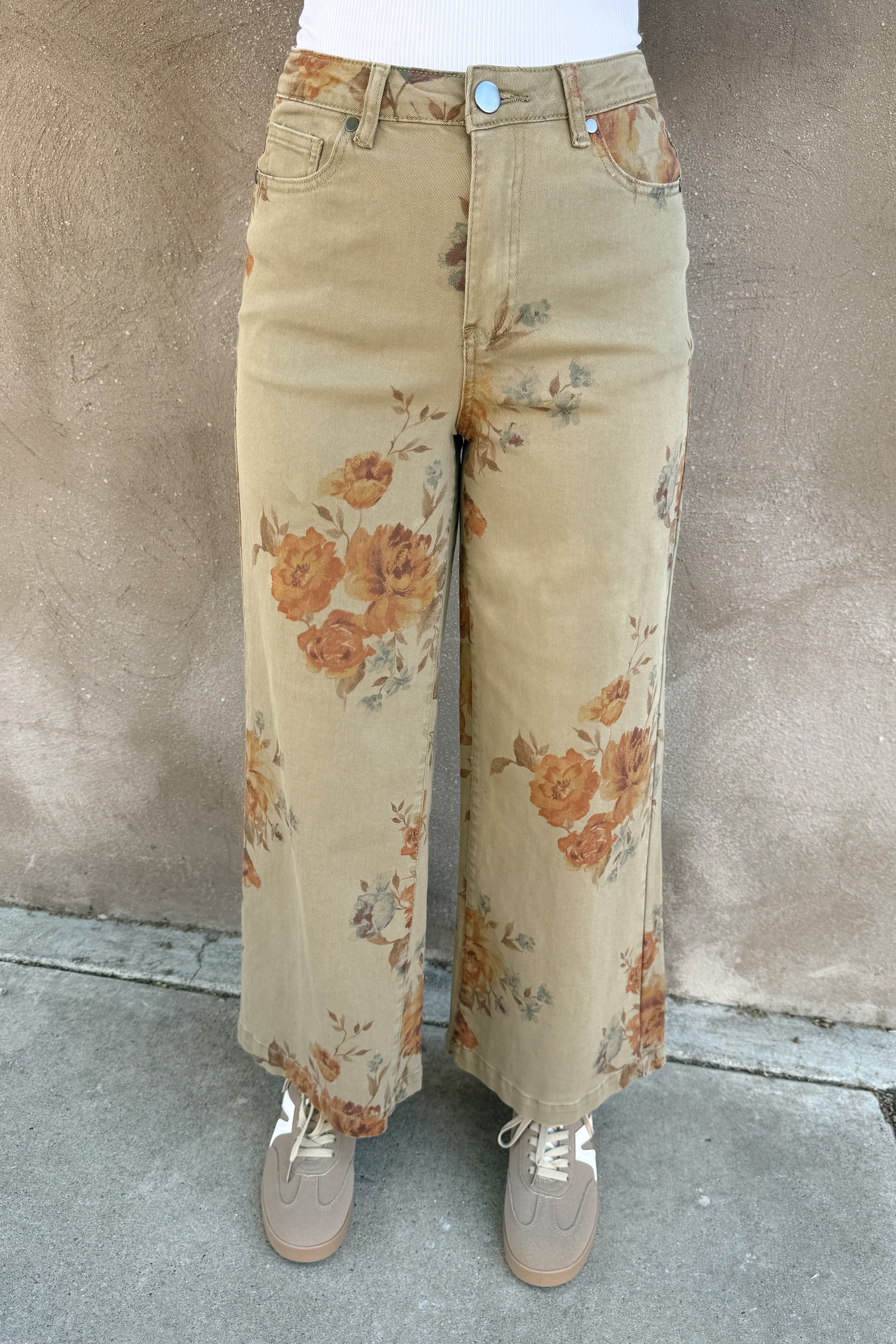 These pants are fun, flattering, and comfortable all at once. The wide-leg cut and high-waisted fit give them a relaxed, modern shape, and the all-over floral print adds a playful touch. I love the raw hem detailing — it gives them a little edge without feeling too fussy. The classic five-pocket style, zip fly, and button closure make them practical too.