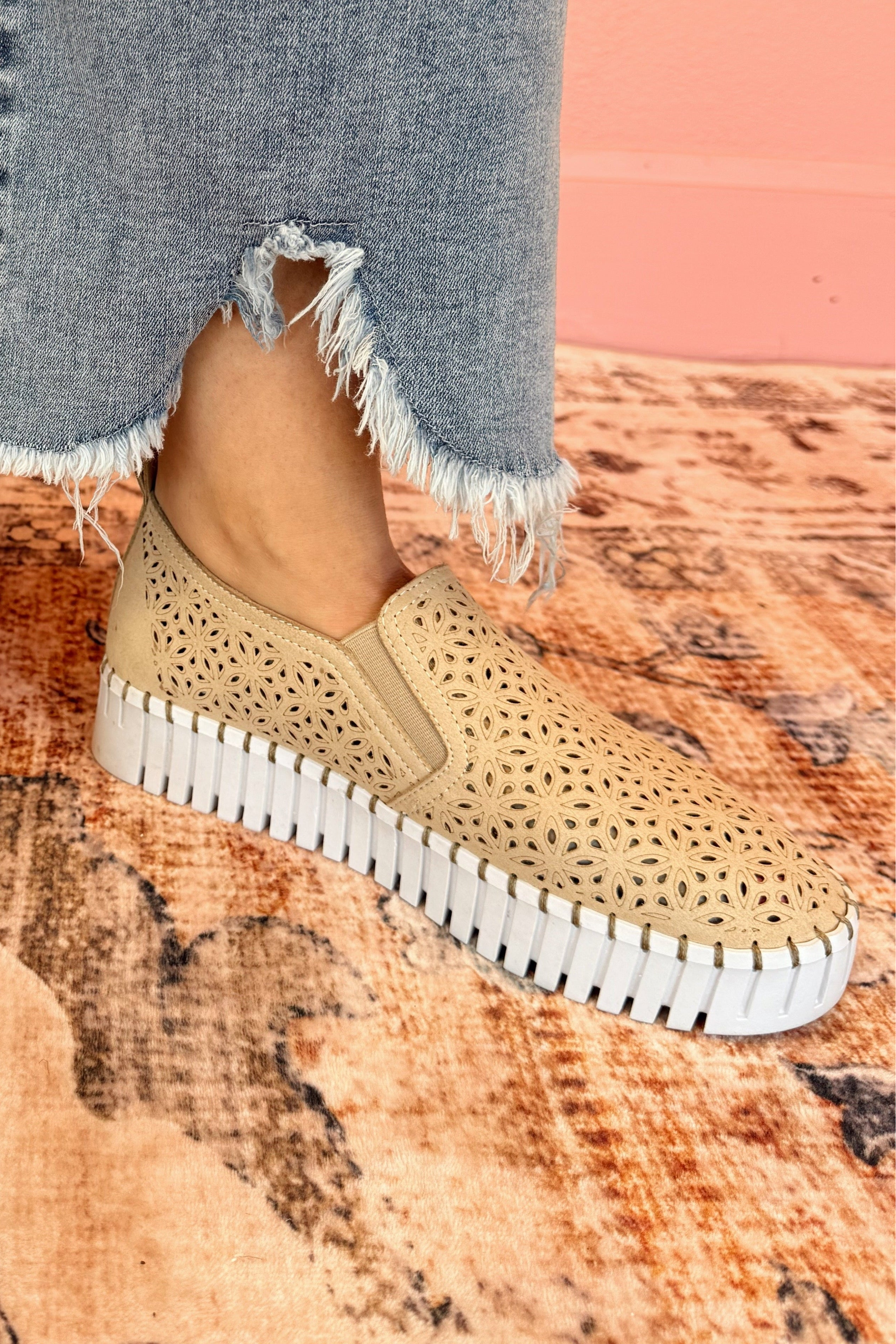 Breeze through your day in our Nicole Laser Slip-Ons. These ultra-lightweight shoes feature a laser-cut floral design that keeps things breathable and stylish. The cushioned sole offers all-day comfort, while the easy slip-on style makes them a go-to for errands, travel, or casual days out. Versatile, comfy, and cute — the perfect everyday essential!