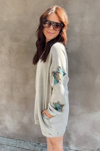Ash Gray Star Patch Terry Dress