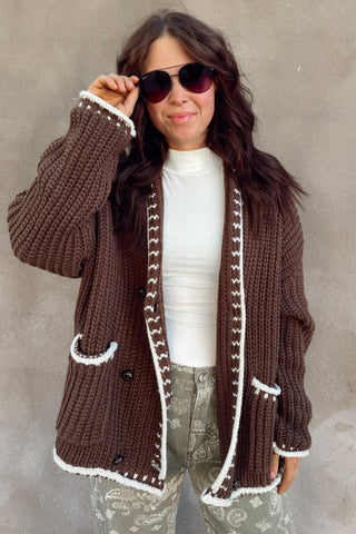 Brown Chunky Knit Oversized Cardigan