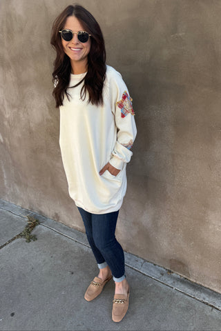 Cream Star Patch Terry Dress