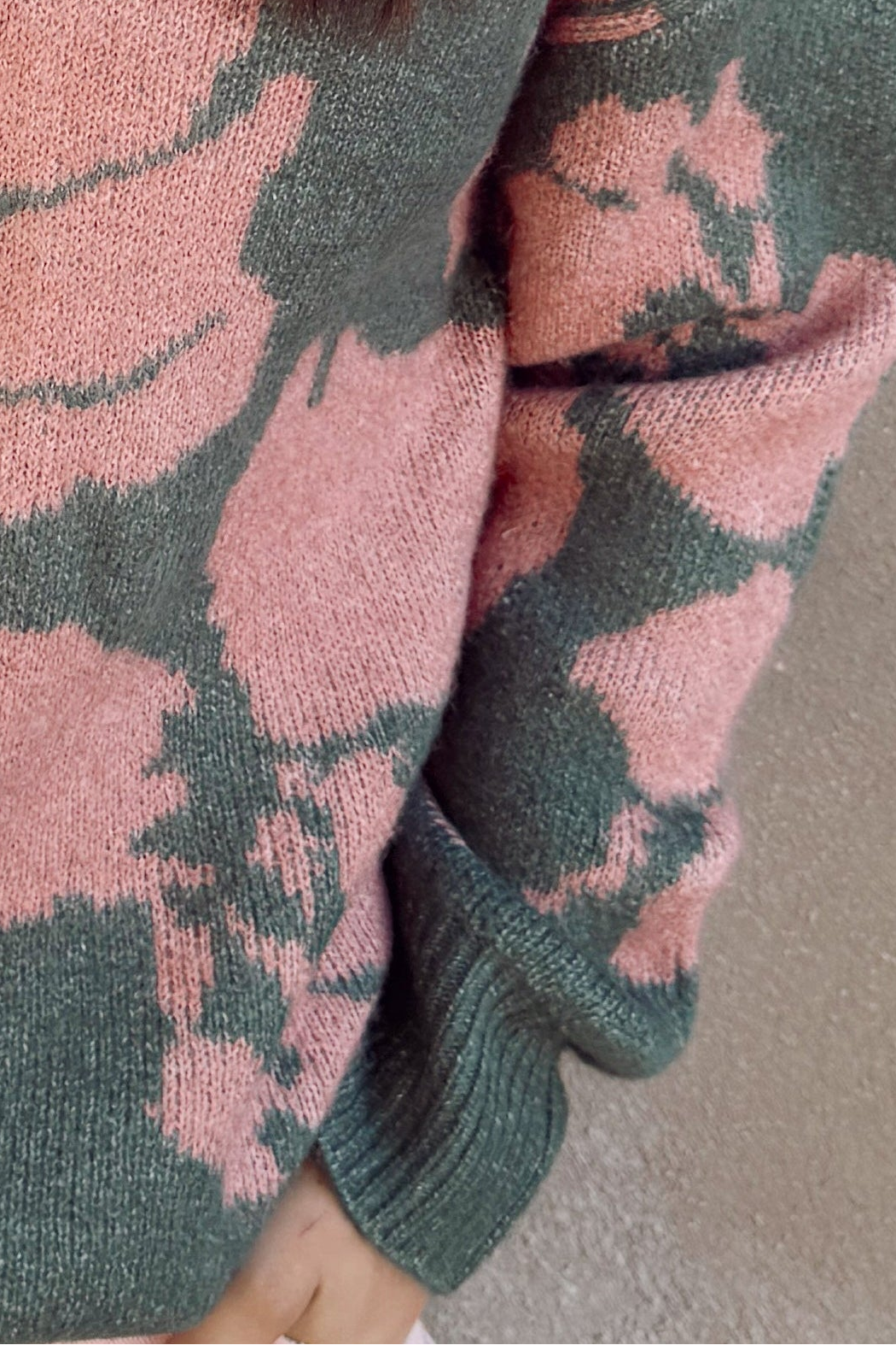 This floral knit sweater is bold, cozy, and ready to make a statement. Designed with a classic crew neckline, long sleeves finished with ribbed cuffs, and a relaxed silhouette, it’s the kind of piece that feels as good as it looks. The ribbed hemline adds a clean finish, while the soft, stretchy blend of acrylic, polyester, and spandex keeps things lightweight and comfortable. The oversized floral pattern in earthy beige pops beautifully against the black knit, giving it a playful edge with a touch of retro charm. Not lined, but plenty warm—perfect for pairing with denim, trousers, or layered over a dress.