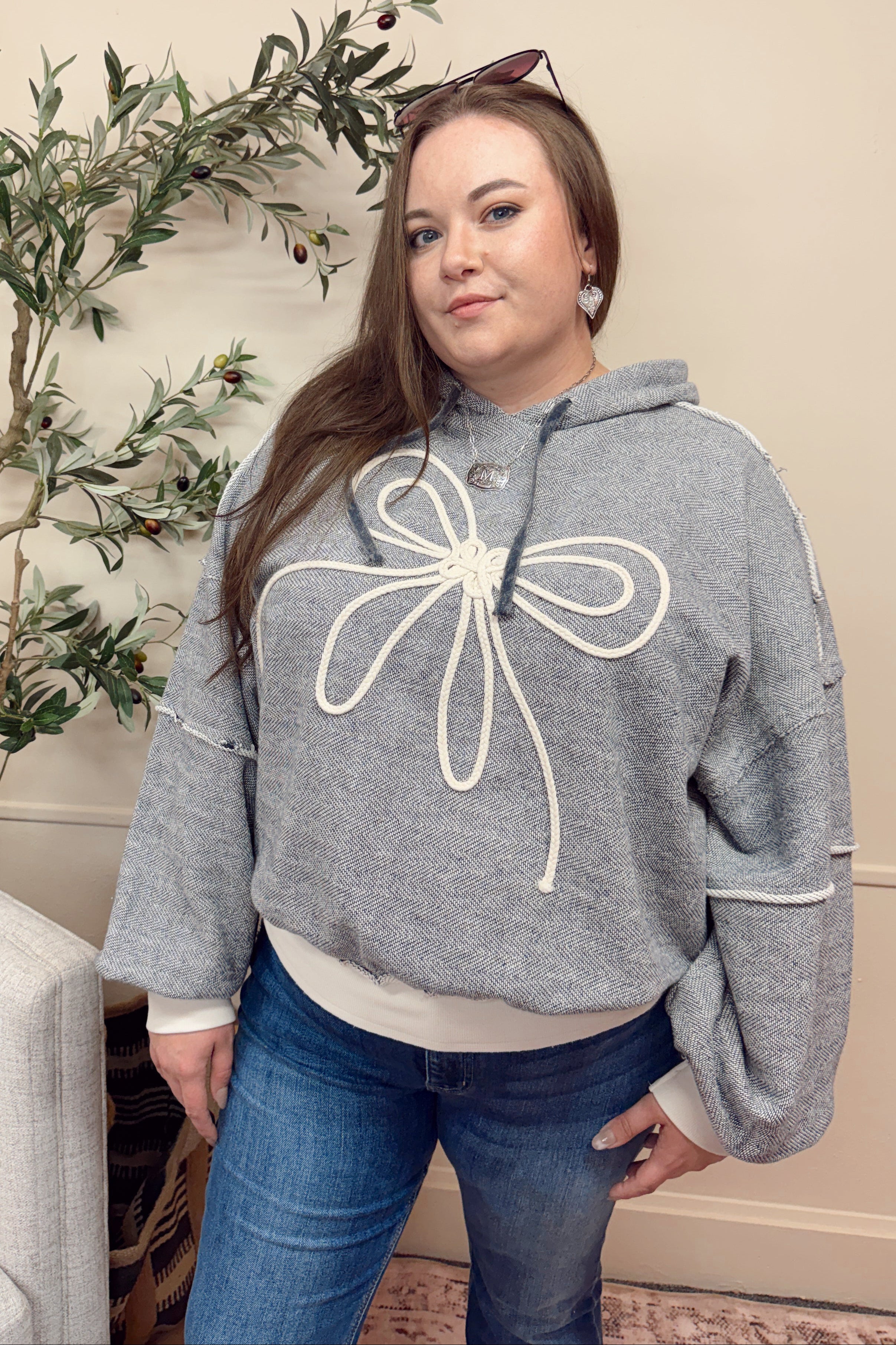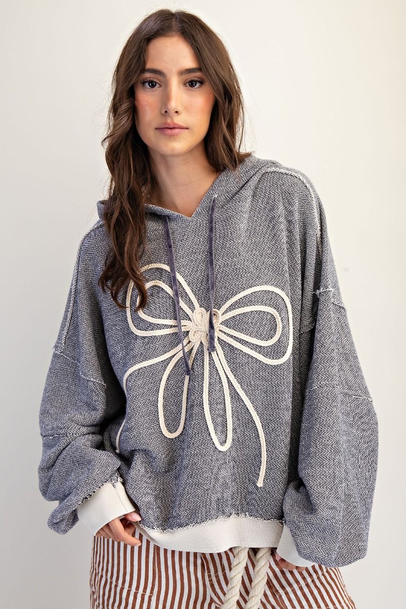 Description: BOW EMBROIDERY PULLOVER HOODIE